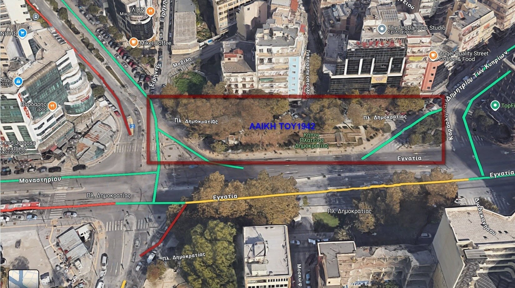 Στο φιλμ φαίνονται τα δέντρα που έκλειναν την Εγνατία στο μισό πλάτος της, απέναντι από την Κλινική Νεδέλκου (Αγιορείτικη Εστία). Φωτογραφία τους και στα σχόλια. Μοντάζ από γερμανικά κατοχικά φιλμ.