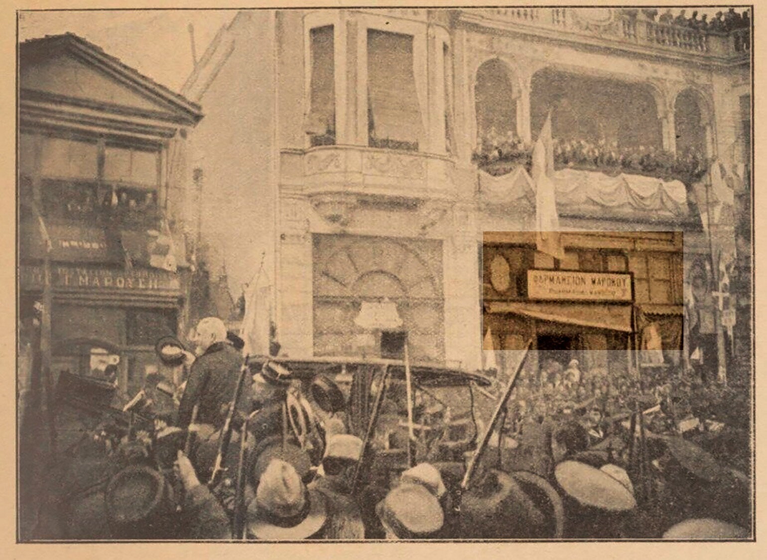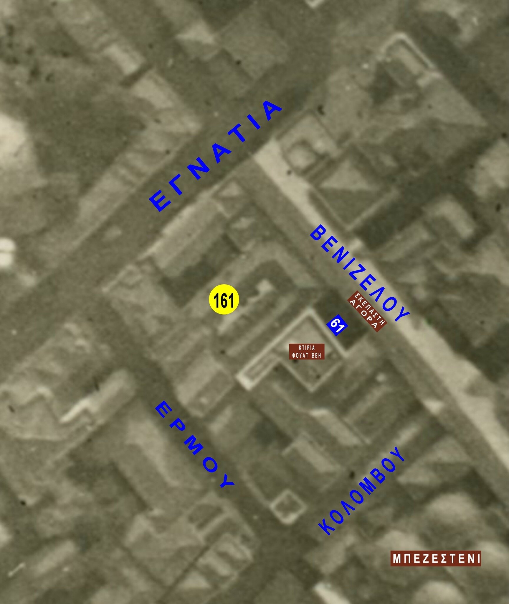 Τι μεσολάβησε και από τις παράγκες που άφησε ο Κατούνης φτάσαμε στο διώροφο χάνι της αγγελίας του 1912 που σημειώνεται με κίτρινο στην αεροφωτογραφία;