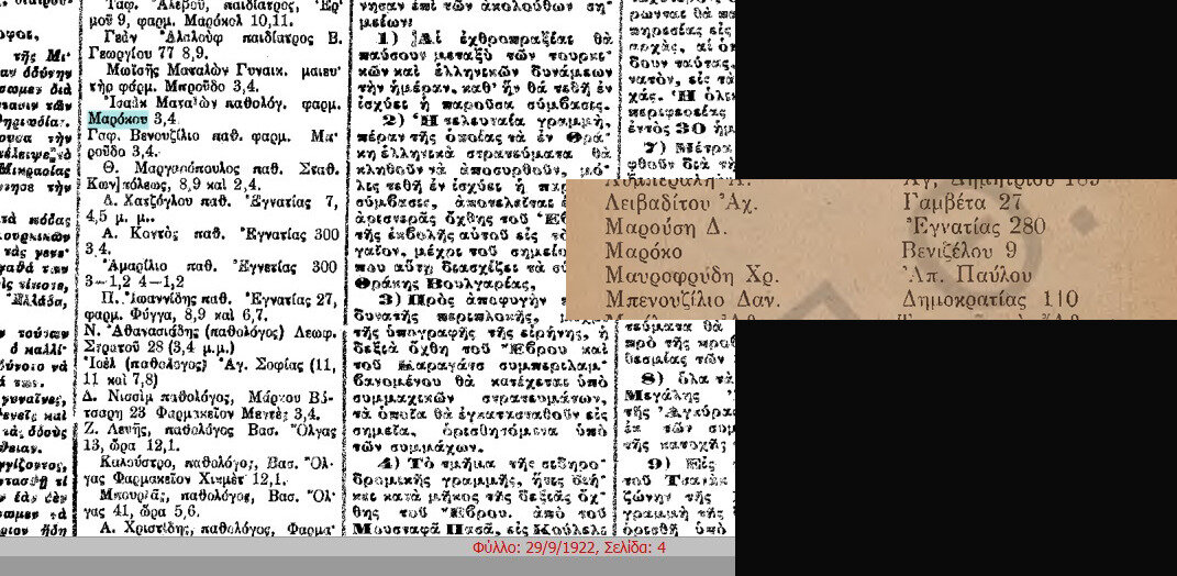 Η φωτιά το έφτασε, και σίγουρα έπαθε ζημιά. Στην εικόνα της Φράγκων σ’ εκείνο το ύψος [που είχε αναγνωρίσει ο Στάθης Ασλανίδης εδώ: https://www.facebook.com/thessalonikilostcity/posts/pfbid0i42zcDz6DjQoqSFkgttmYazZuxCjbDbab2vsEMzKTtzuE1rK7pM9sTA2foaWk51gl ] μπορούμε πια να ονοματίσουμε και το κτίριο στο βόρειο πεζοδρόμιο της, απέναντι απ’ το Μαζί Χαν.