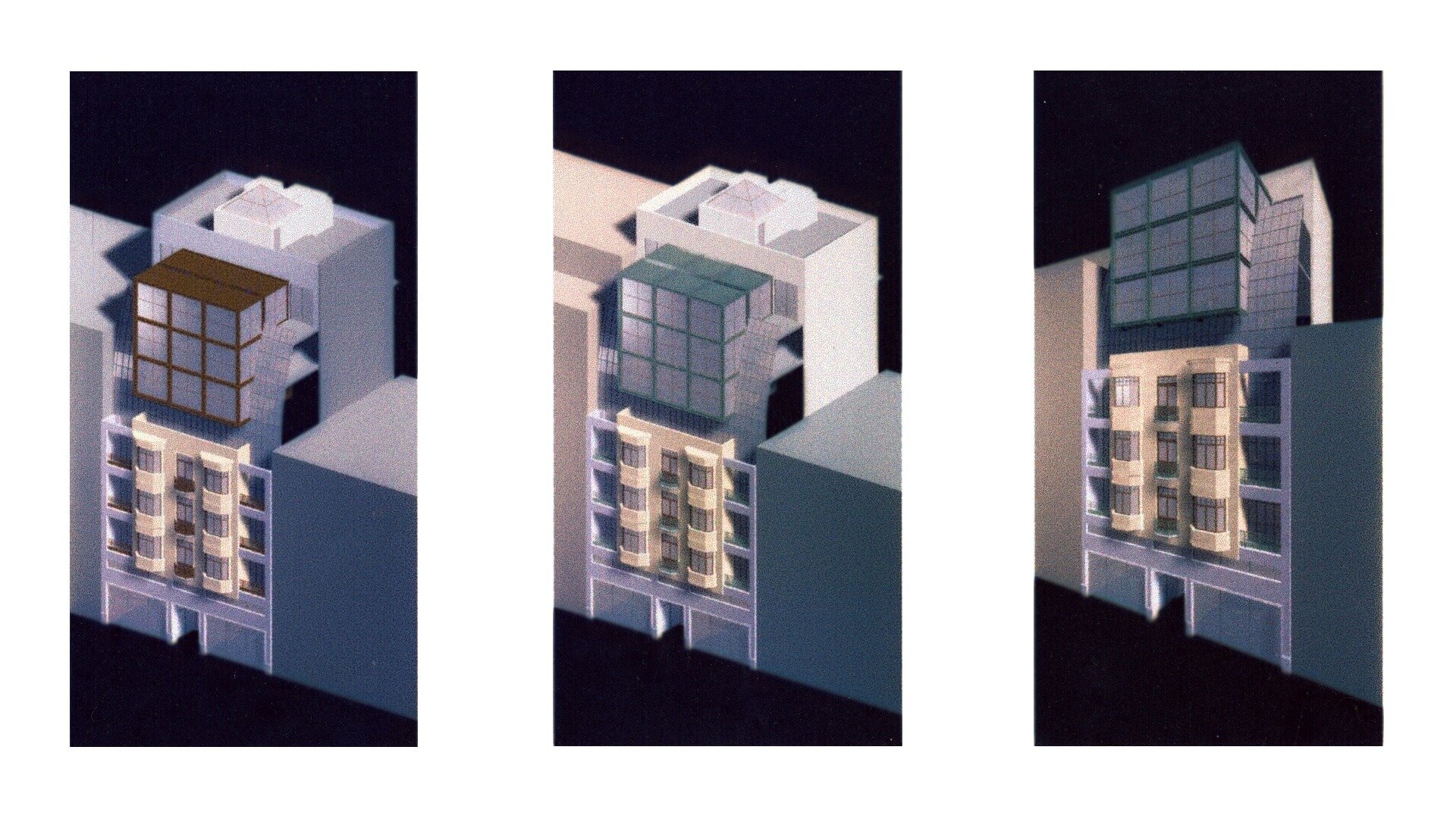 Η διαμόρφωση της όψης της προσθήκης με μεταλλικά στοιχεία και κατάλληλα προφίλ στα κουφώματα επιλέγεται με στόχο η προσθήκη να μην παραπέμπει σε συγκεκριμένη ημερολογιακή ταυτότητα και να δίνει την εντύπωση αυτοφερόμενης κατασκευής χωρίς να συνθλίβει το παλιό συμβατικό κτίριο”.