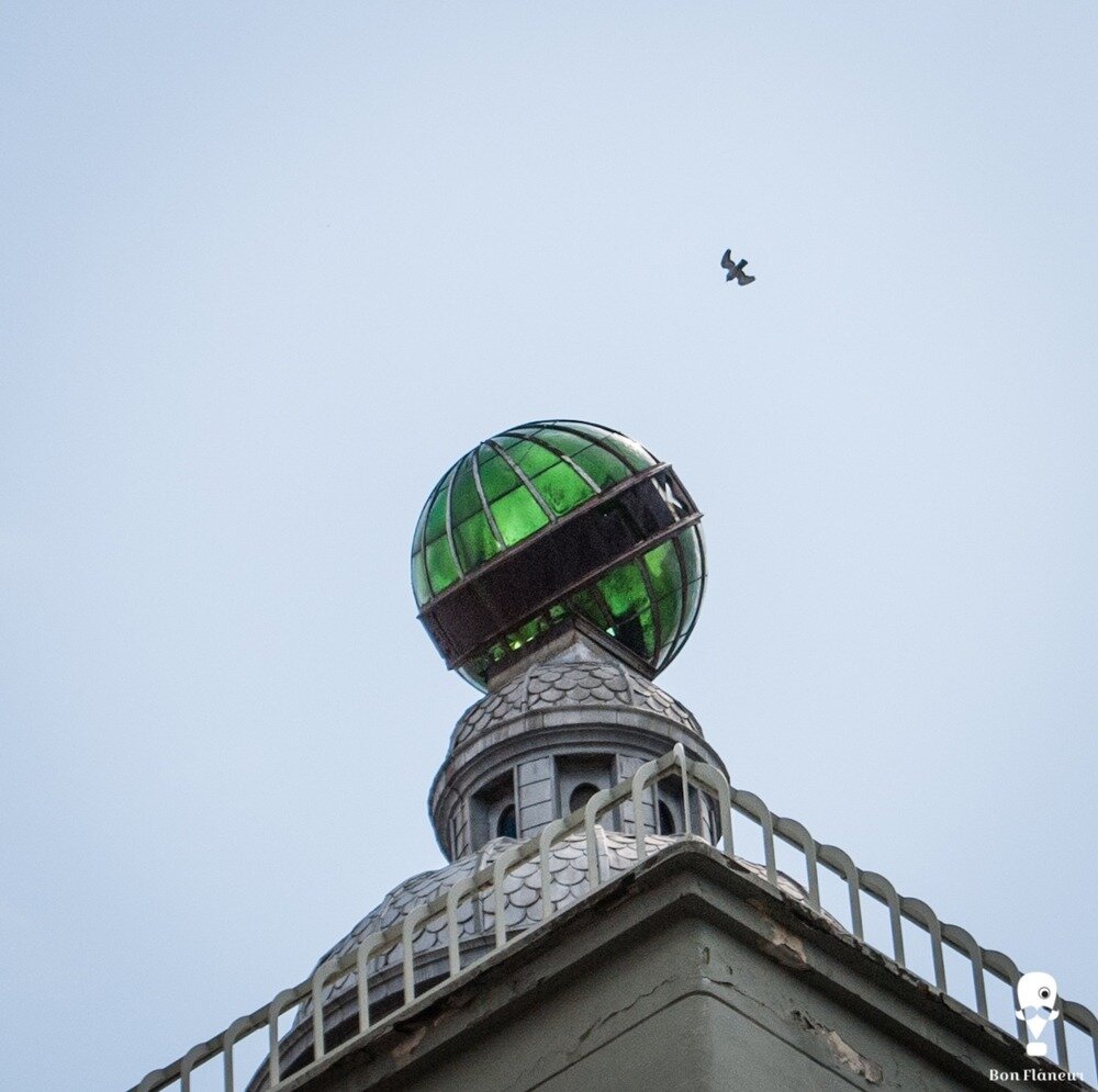 Το Μέγαρο Στάιν και η πράσινη σφαίρα του στην πλατεία Ελευθερίας