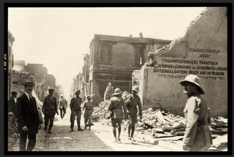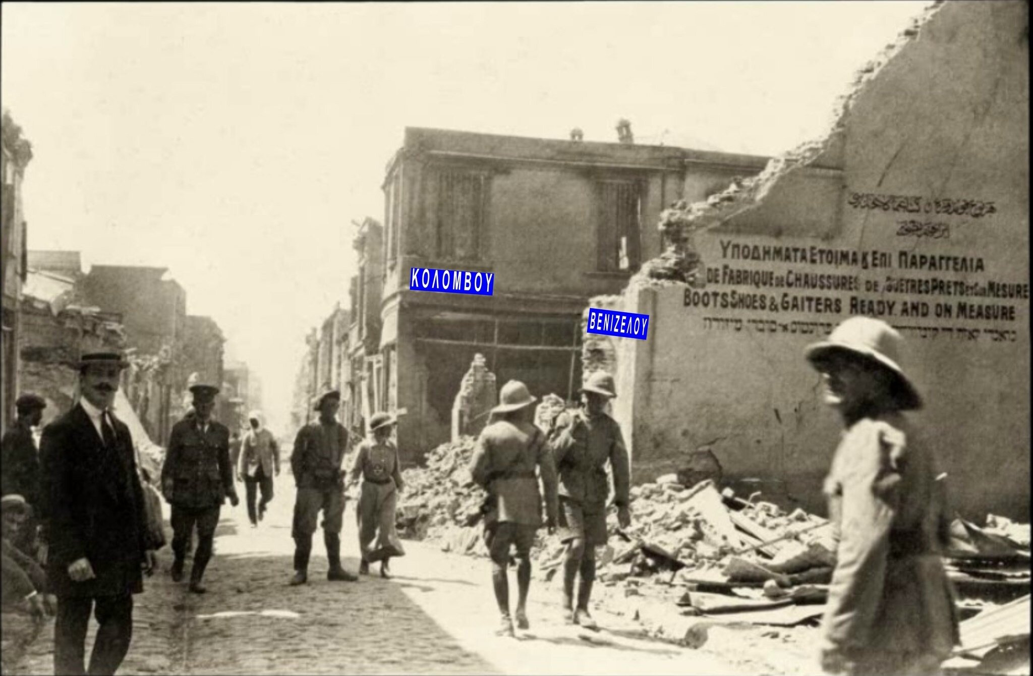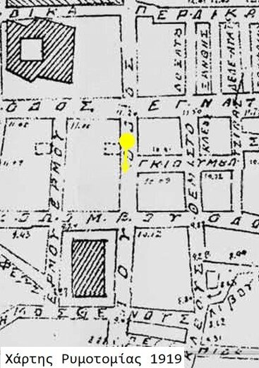 Ο φακός στραμμένος νότια καταγράφει τμήμα της Σκεπαστής Αγοράς που δεν επιβίωσε της πυρκαγιάς του 1917.